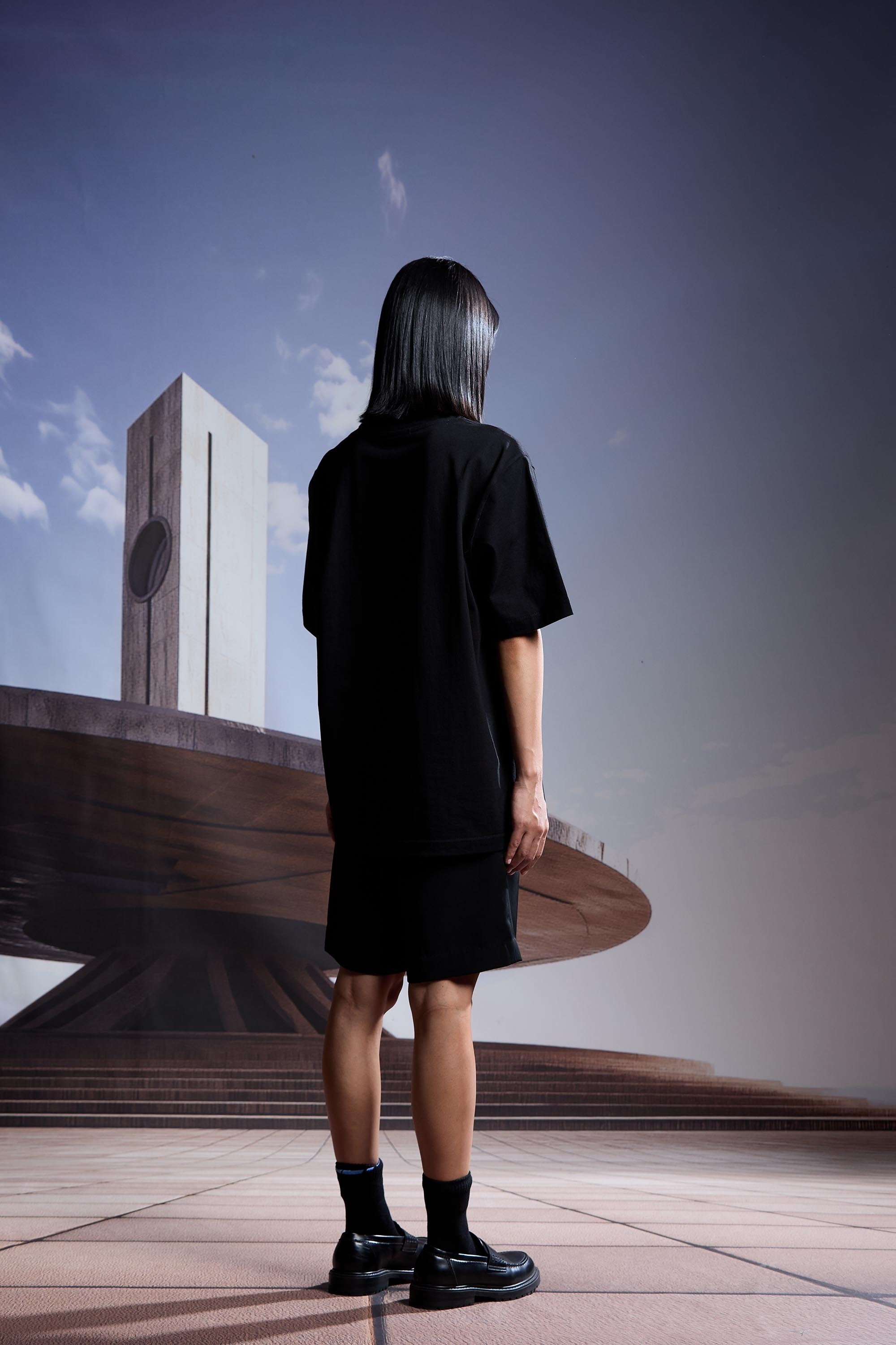 'Redhour' printed tee in black.