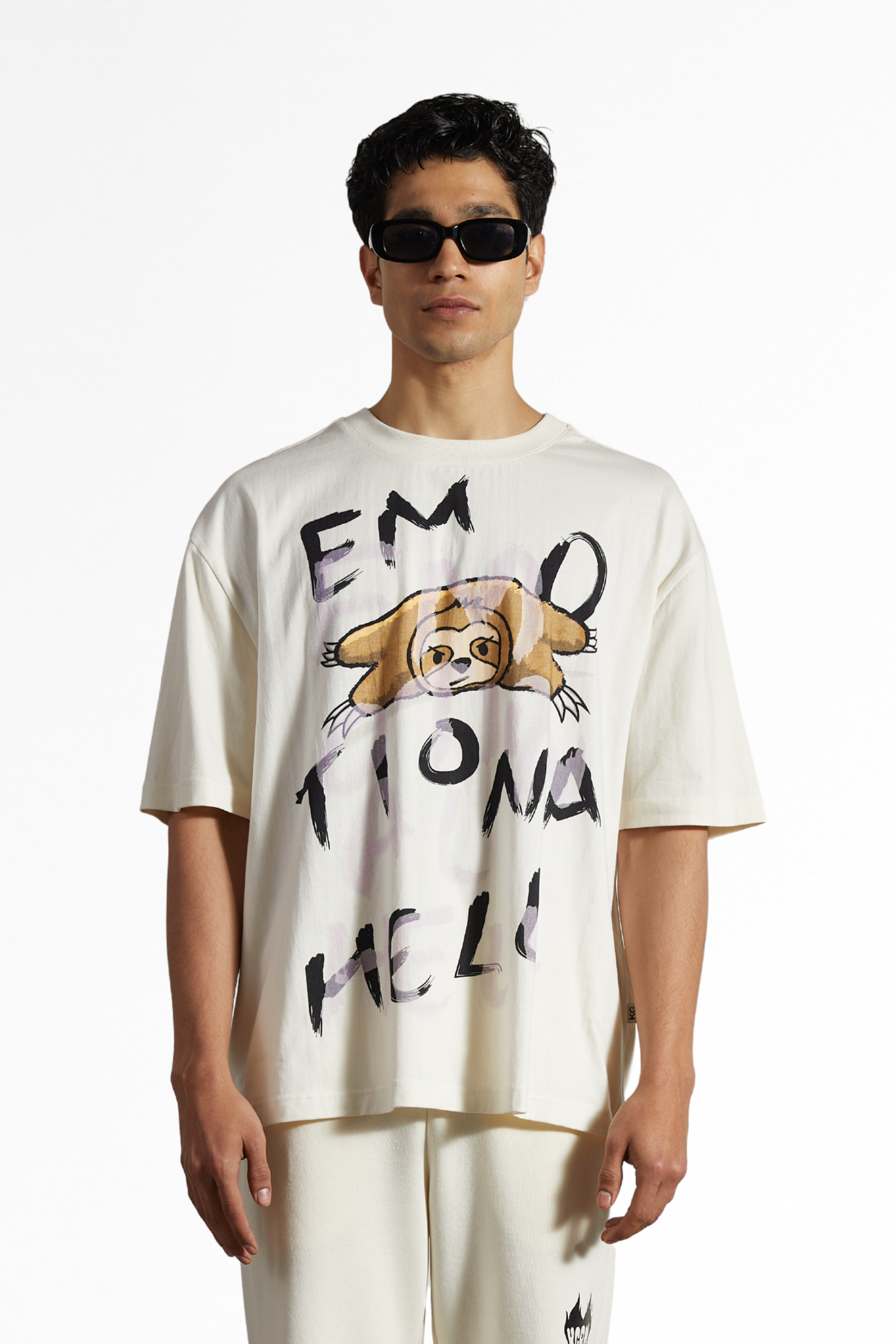 'Emotional Hell' cotton tee in off-white colour.